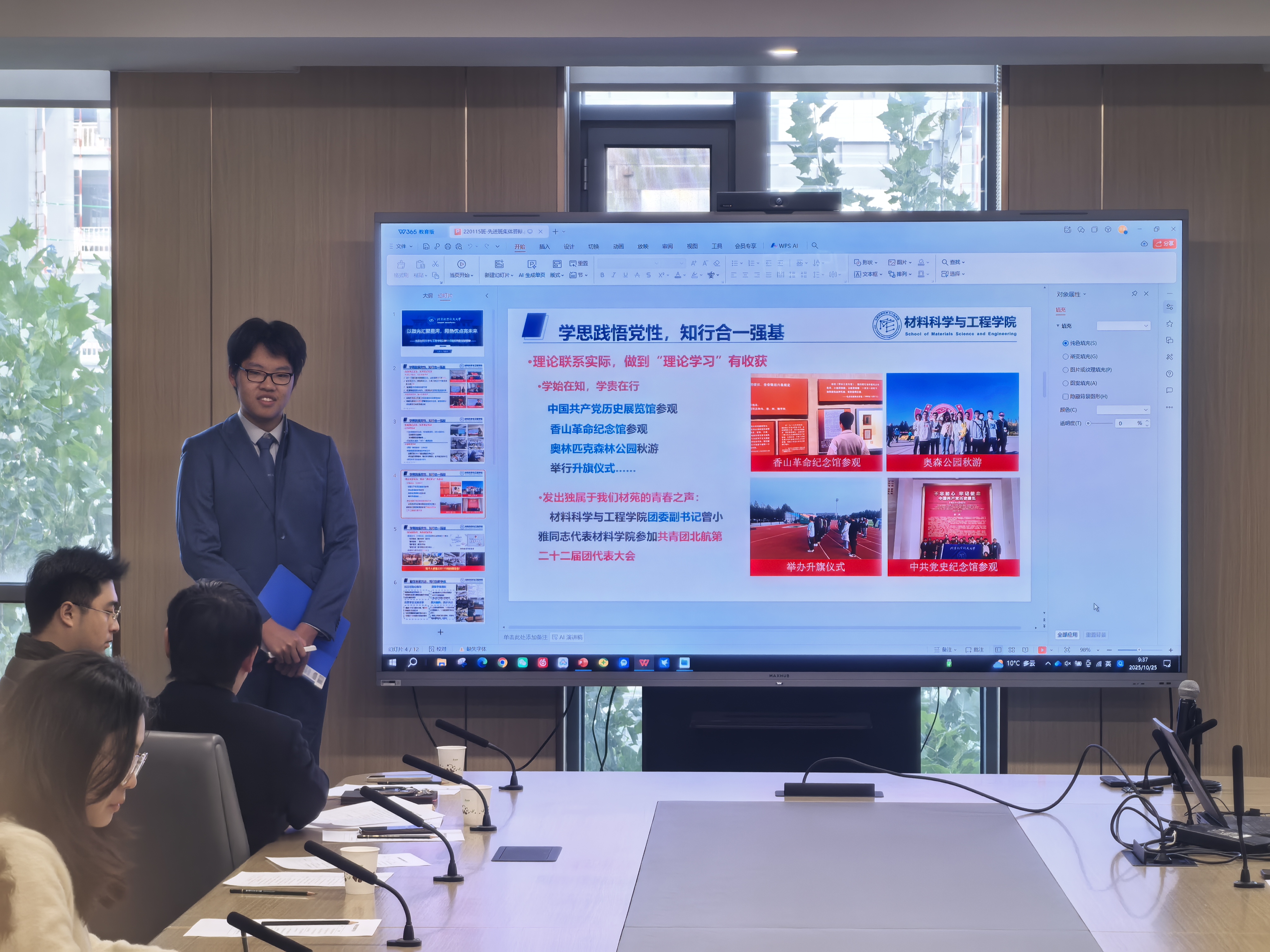 为进一步加强班团组织建设,激发班团组织活力,树立先进集体典型,10月25日上午,材料学院在沙河校区科研一号楼320会议室,举行先进班集体答辩会暨班级建设交流会。学院党委副书记王子琦、专职辅导员黄兆存、本研兼职辅导员及本研各班级学生代表参加会议。