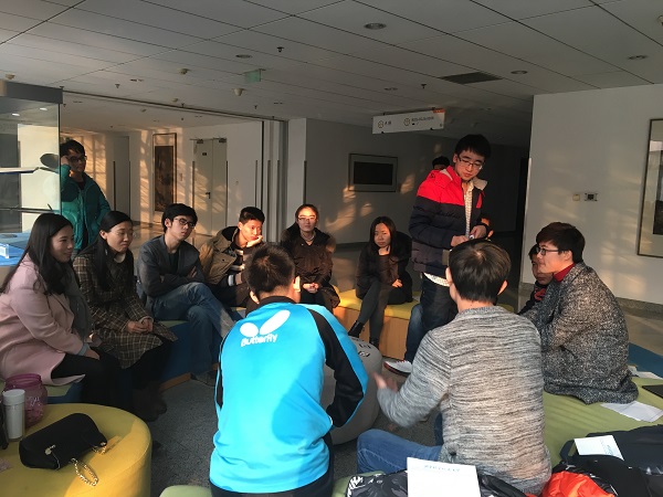 在接下来的狼人杀大赛中,在场的大神们各显神通,引来了众多围观者。“村民们”艰苦找“狼”,“狼”们精心伪装,各个唇枪舌剑,十分精彩。武悦同学逻辑十分严密,讲话气场强大,说服力强,但也因此成为了狼人首杀对象。由于参与人数众多,需要大量记忆,上帝也十分辛苦地全程比赛服务。比赛过程中状况频出,许多村民好人由于信息太少只能凭感官和其他人的逻辑推断,难免出现误判,无疑增加了比赛难度。其中曹品作为狼人,看似在睿智地推理,实为冷静地藏匿,最终连胜两场,被评为全场公认的MVP,获得阵阵掌声。