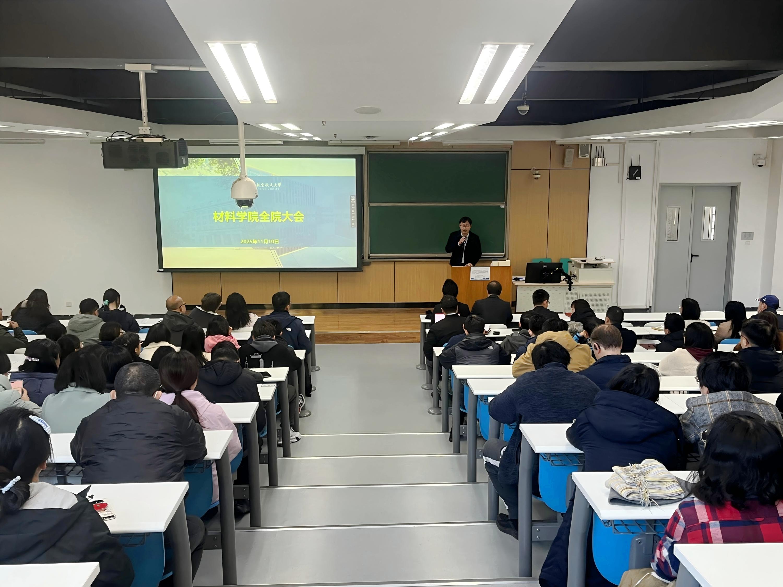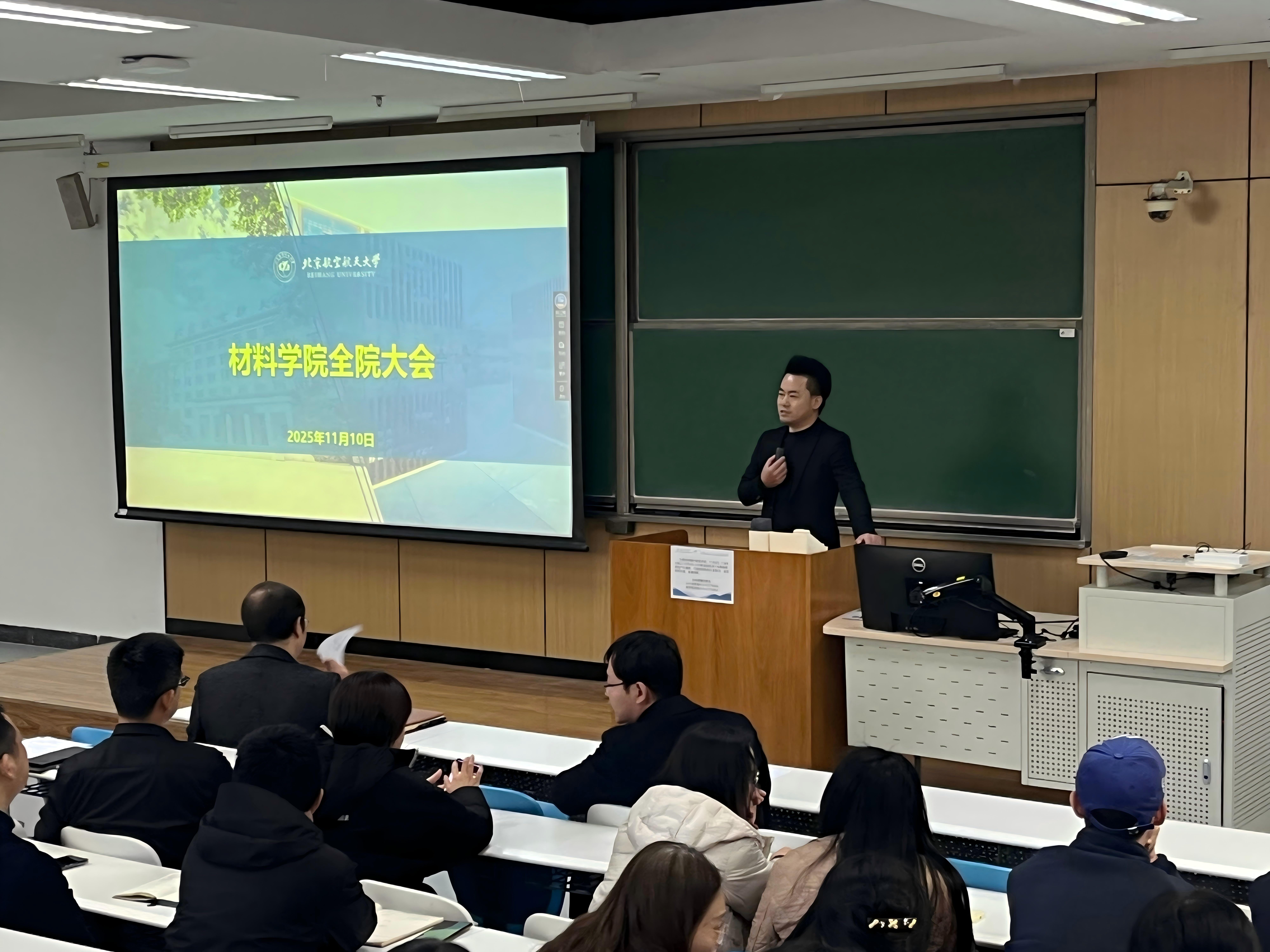 11月10日上午,材料科学与工程学院在沙河校区J3-105教室召开2025年秋季学期全体教职工大会,重点部署实验室安全、保密管理、人事聘用及研究生培养等工作。学院党委书记郭洪波、院长赵立东,全体院领导班子及教职工参加会议,会议由学院党委副书记王子琦主持。