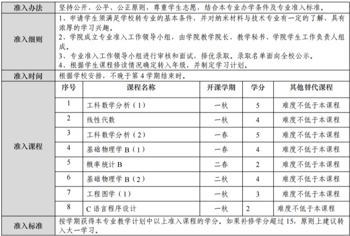 纳米科学与技术专业培养方案