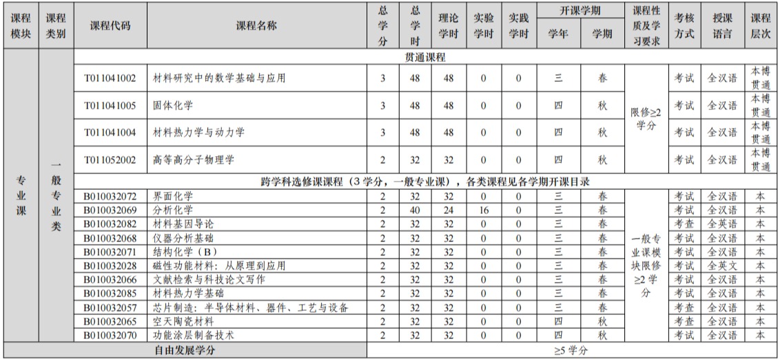 2. 自由发展学分建议选修 3 学分跨学科专业课程(详见最低毕业学分框架表说明)、2 学分无限制类别课程。