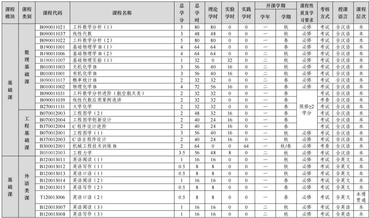 4.跨学科专业课要求:本科学生毕业前至少修读 3 学分的跨学科专业课(一般专业课),各类课程见其 他学院一般专业课开课目录。修读课程属性为非航空航天学科群。