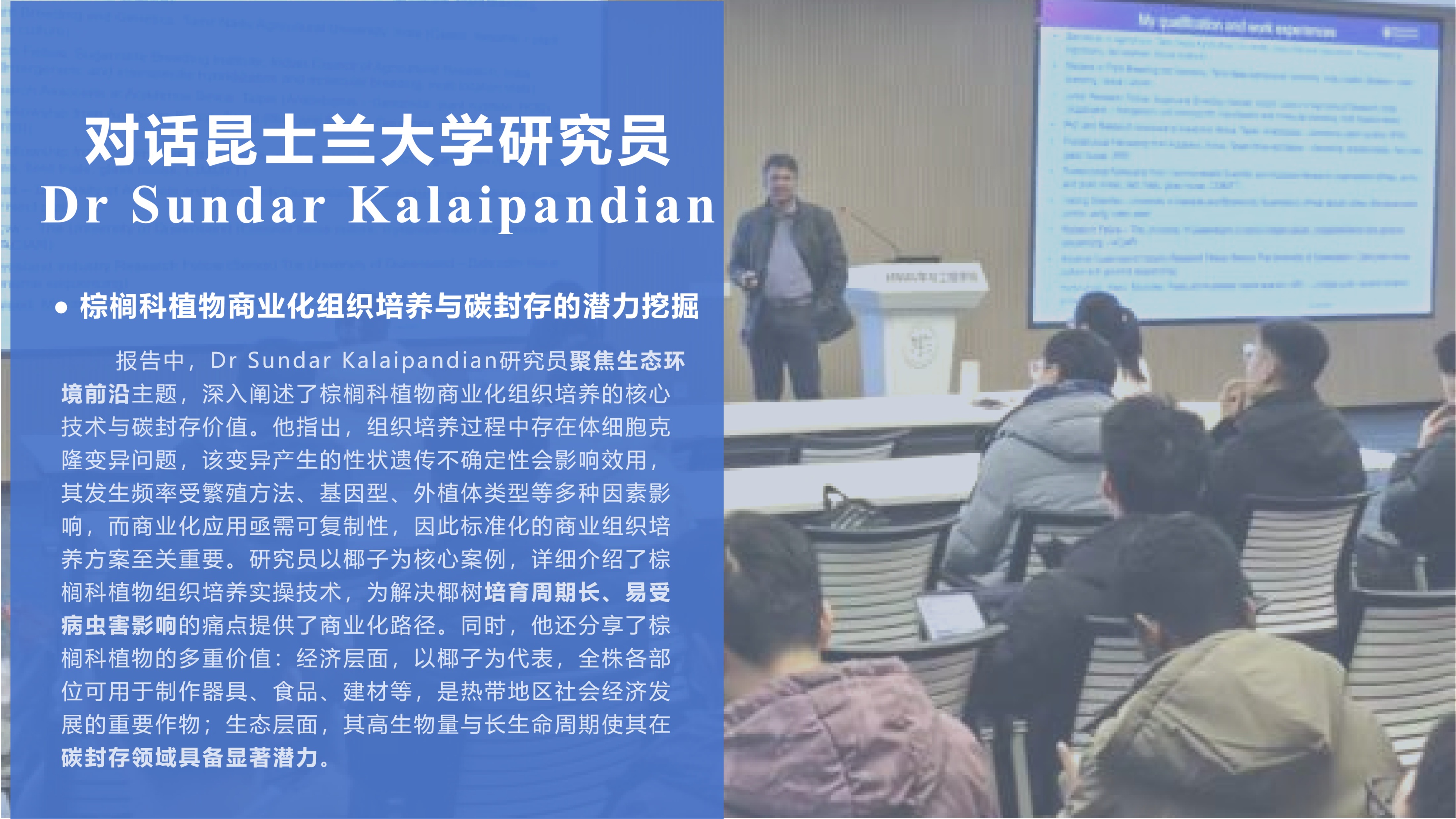 (通讯员 夏宝乐) 组织培养是依托植物细胞全能性,在无菌条件下将植物器官、组织或细胞等外植体接种于人工配制培养基,调控温度、光照等环境并辅以植物生长调节剂,诱导其经脱分化、再分化形成完整植株的生物技术,可规模化培育高产抗病优质种苗,破解传统育种周期长、成本高的难题。为提高学生对前沿材料交叉领域的认识,助力科研成果高效转化,1月14日上午,北京航空航天大学材料科学与工程学院“乐育良材大讲堂”系列活动特邀...